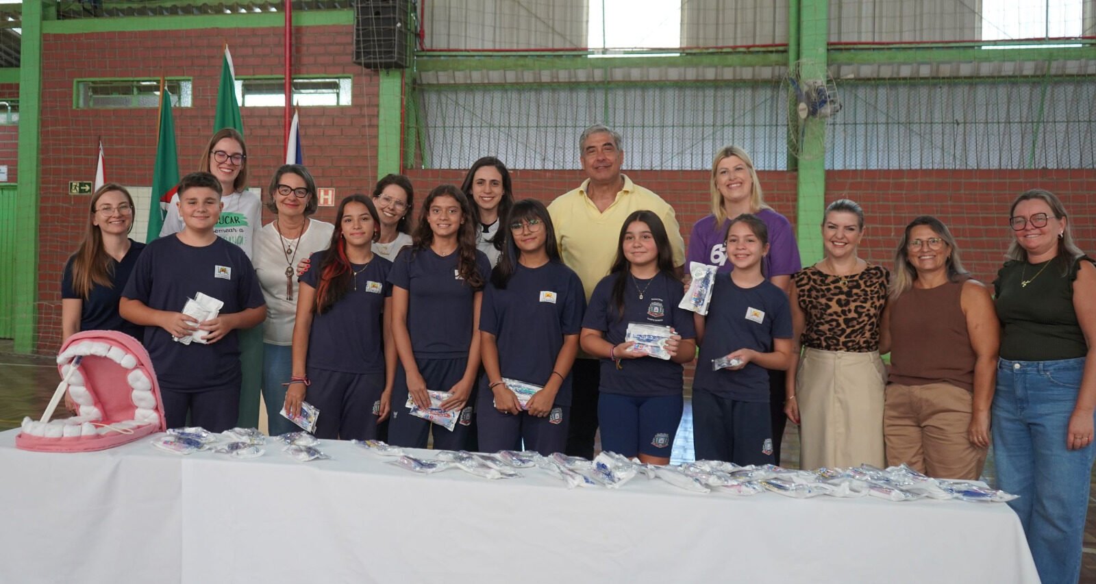 Cada kit é composto por estojo, fio dental, creme dental e escova de dentes com cerdas macias. Durante a atividade, o prefeito destacou que a ação vai além da distribuição dos materiais. Segundo ele, a proposta é contribuir para que os alunos cresçam com hábitos saudáveis e mantenham a saúde bucal ao longo da vida.