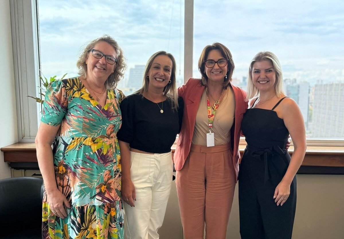 O encontro ocorreu no gabinete da secretária estadual da Mulher, Fábia Richter, e contou com a participação da vice-prefeita Gênifer Engers; da vereadora e procuradora da Mulher de Campo Bom, Michele Closs; e da representante da Divisão Técnica de Assistência Social do município, Ione Georg Pedde.