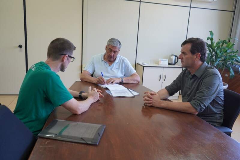 O extensionista rural responsável pelo escritório municipal da Emater/RS-Ascar, Moisés Eloi, reuniu-se com o prefeito Giovani Feltes e com o secretário municipal de Desenvolvimento Econômico e Turismo, Régis Thoen, no Centro Administrativo. Durante o encontro, foi entregue o relatório das atividades desenvolvidas pela instituição em Campo Bom ao longo de 2025, além da apresentação do planejamento de ações para 2026.
