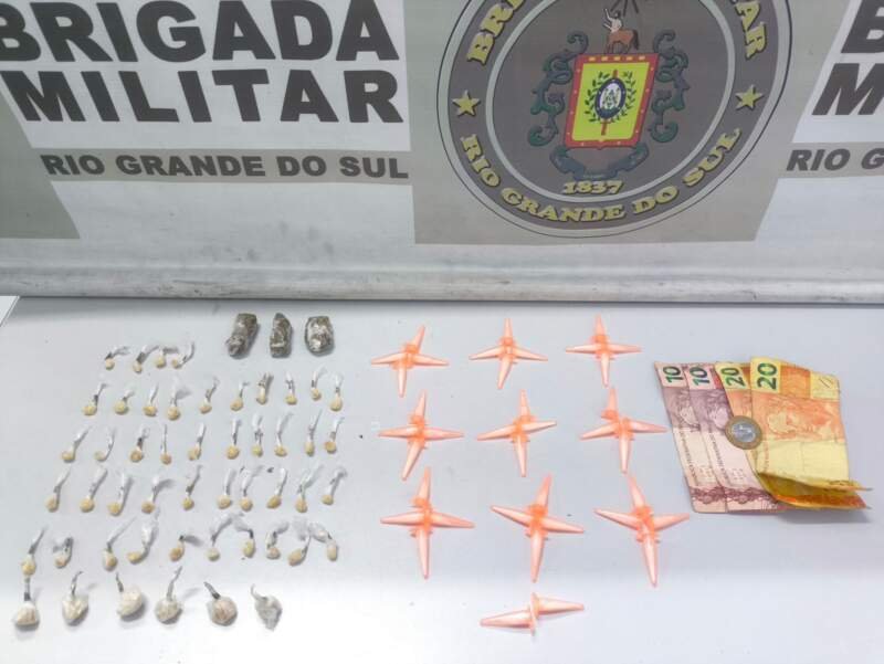 Após a abordagem, em revista pessoal, foi localizado no bolso da calça um malote contendo 30 pedras de substância análoga a crack, 21 eppendorfs de substância semelhante à cocaína e R$ 61 em dinheiro. Na sacola dispensada durante a fuga, os policiais encontraram ainda 17 eppendorfs de cocaína, 14 pedras pequenas de crack, seis pedras grandes da mesma substância e três porções de maconha.